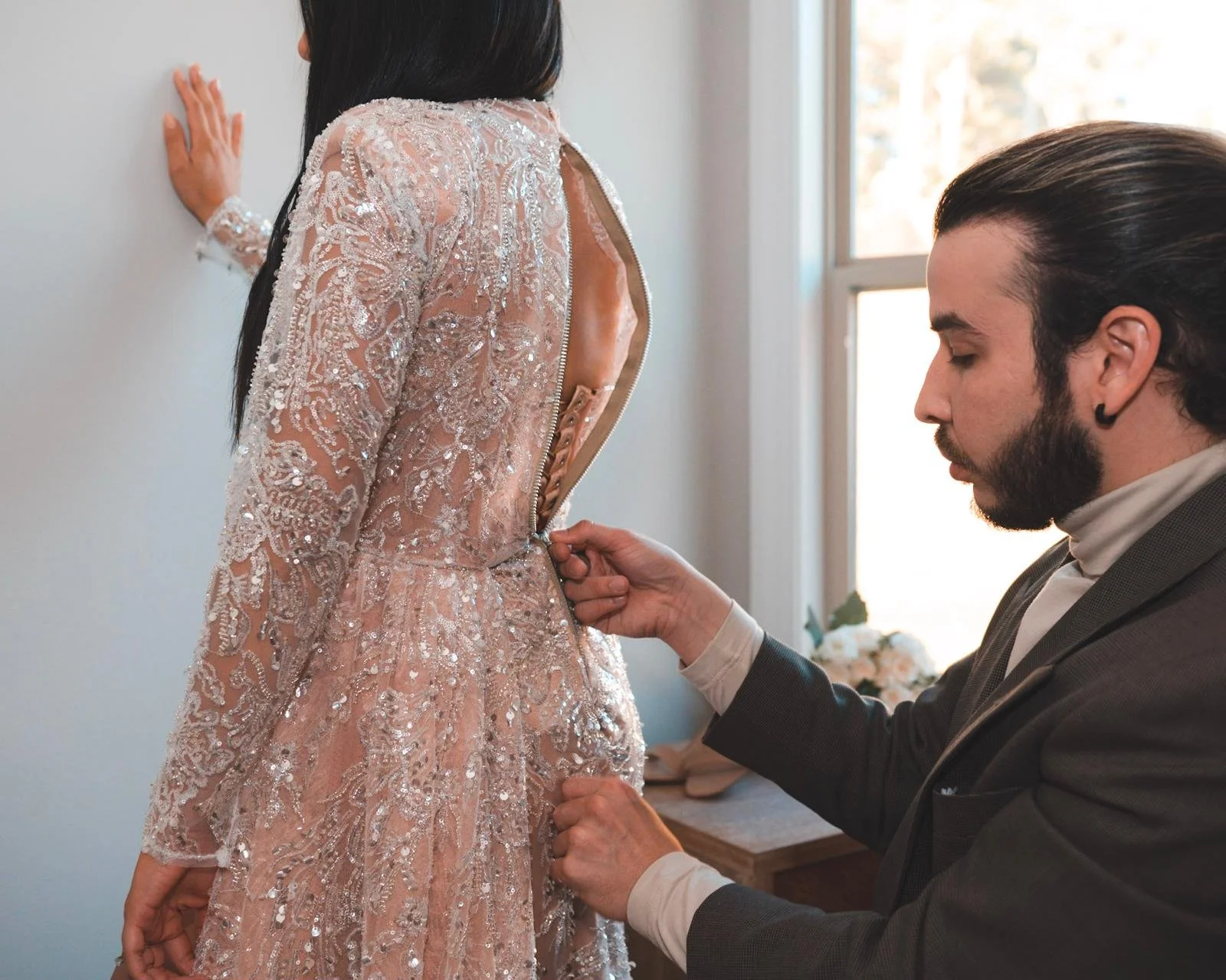 An exclusive bespoke experience devoted to the creation of singular garments for social occasions, bridal moments, and stage wardrobes, each shaped through a thoughtful, personal process.